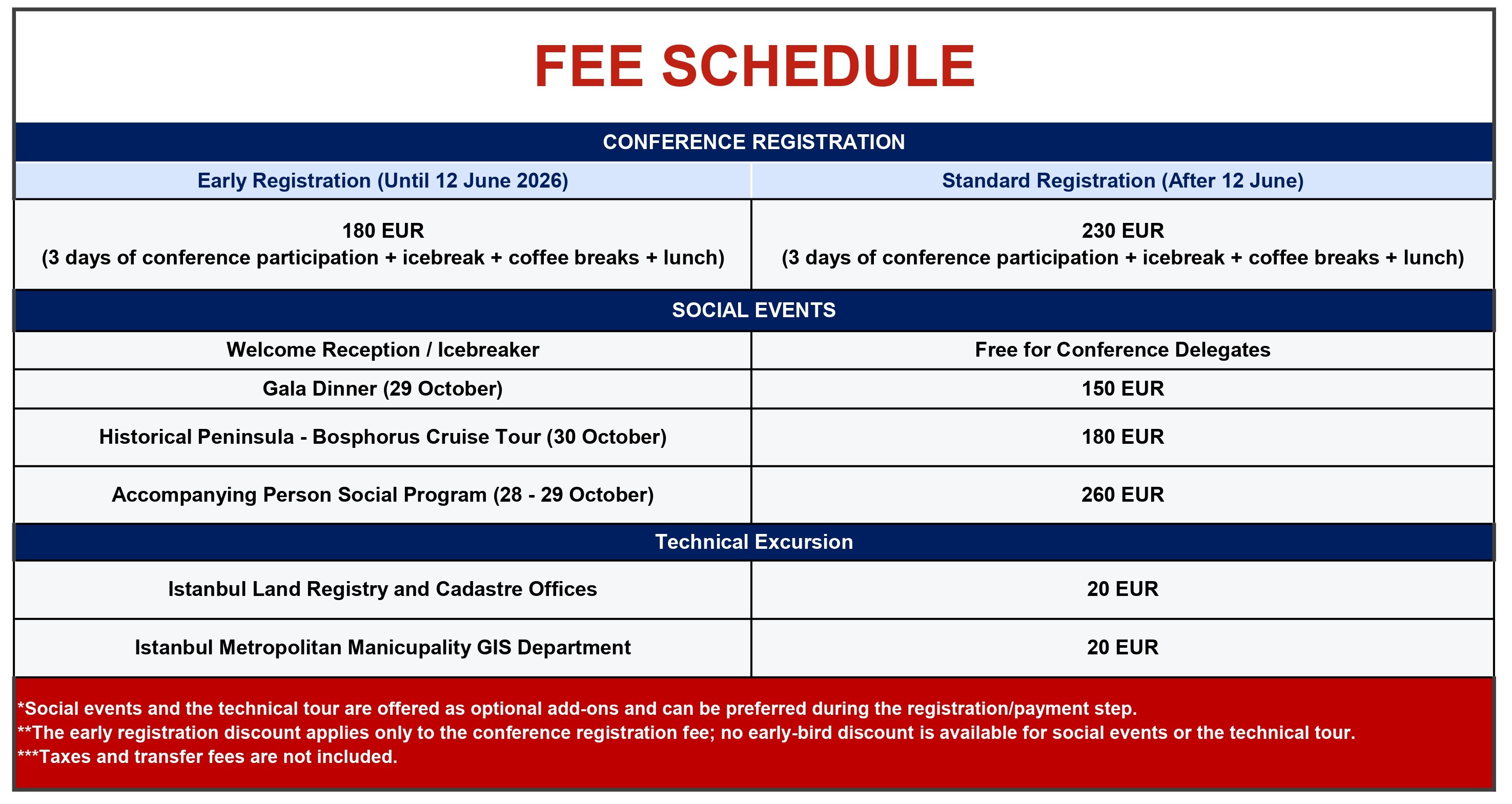 Participation in the conference requires completing the registration process and paying the applicable fee. Fees may vary depending on the registration period (early/standard), participant category, and any optional services. The table below provides the fee structure and what is included. Further details on payment steps and registration terms will be published on this page.